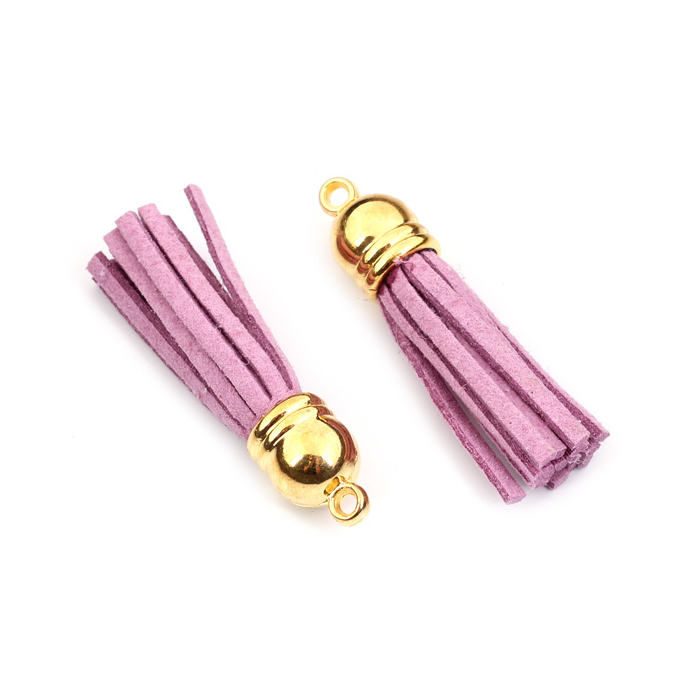 Chwost z rzemienia zamszowego w złotym okuciu jasno fioletowy 4cm