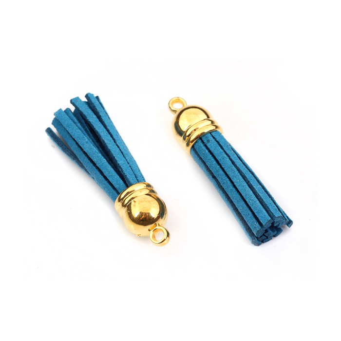 Chwost z rzemienia zamszowego w złotym okuciu morski 4cm