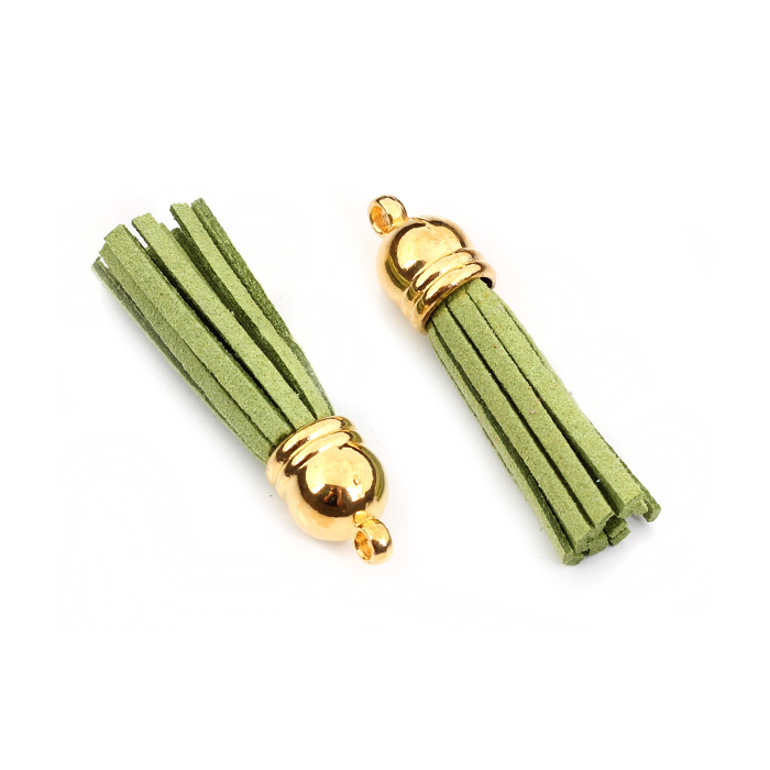 Chwost z rzemienia zamszowego w złotym okuciu zielony 4cm
