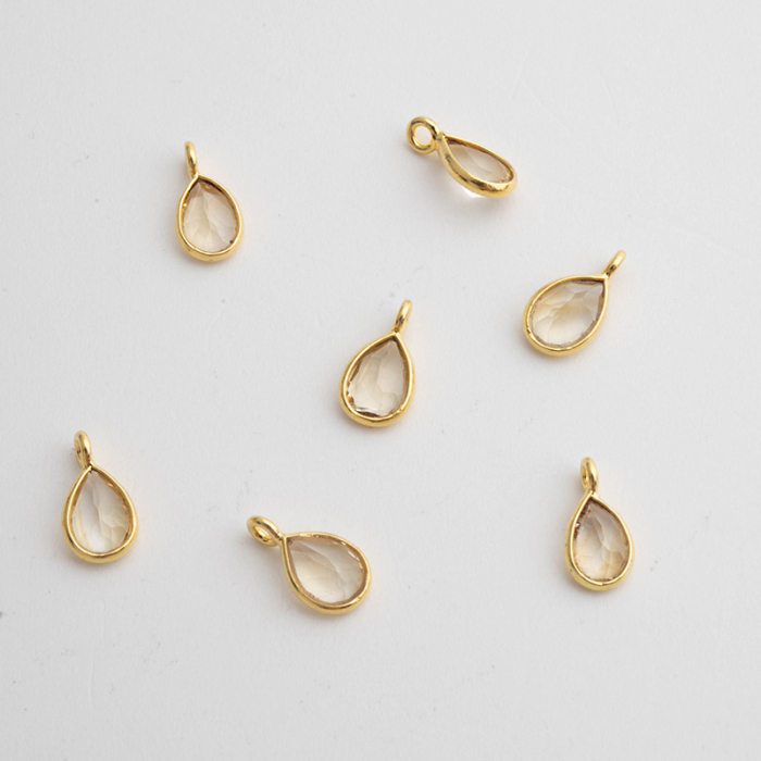 Cytryn łezka fasetowana w okuciu zawieszka AG925 pozłacana 6,5x4,5mm