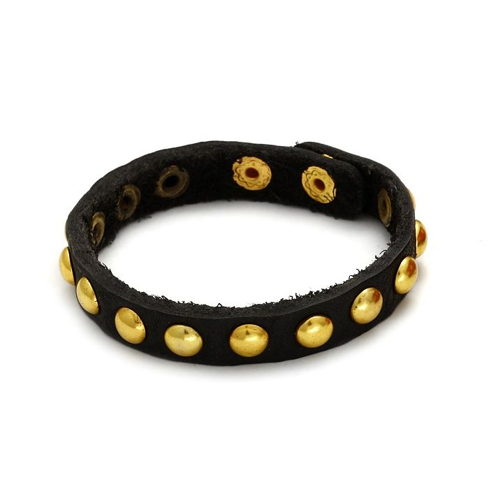 Czarna bransoletka okrągłe złote ćwieki 18-21cm