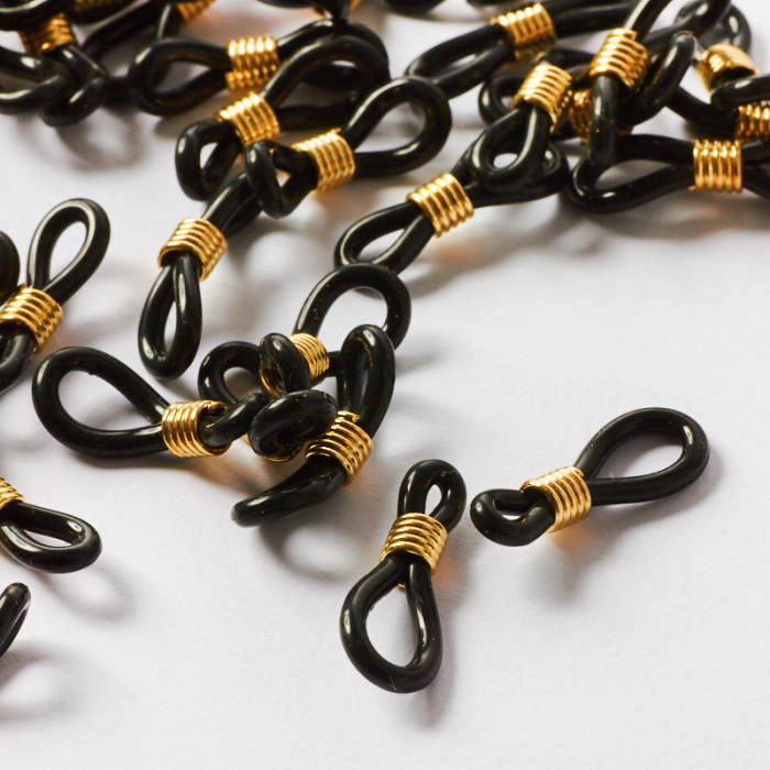 Czarne uchwyty do okularów ze złotą sprężynką 20x4mm