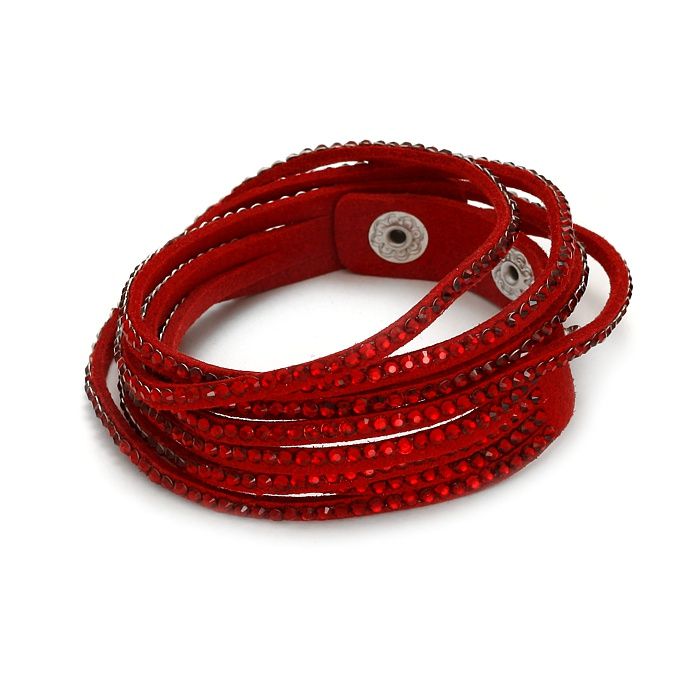 Czerwona bransoletka zamsz wysadzany kryształkami 18-21cm