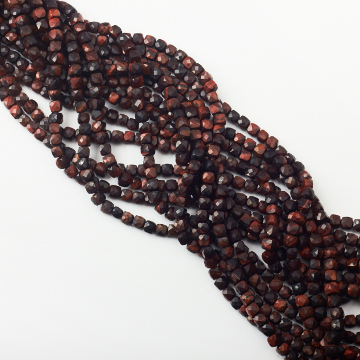 Czerwone tygrysie oko kostka fasetowana 5x5mm
