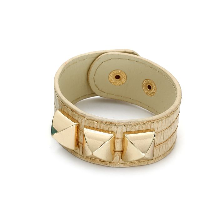 Ecru bransoletka trzy piramidki na skórce krokodla 18-21cm