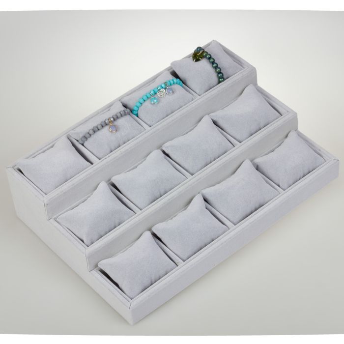 Ekspozytor schodkowy z poduszkami 12 komorowy szary 25x35cm