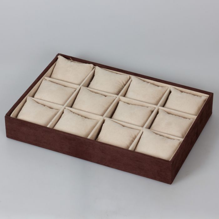 Ekspozytor welurowy z poduszkami 12 komorowy brązowy 5x35x25cm