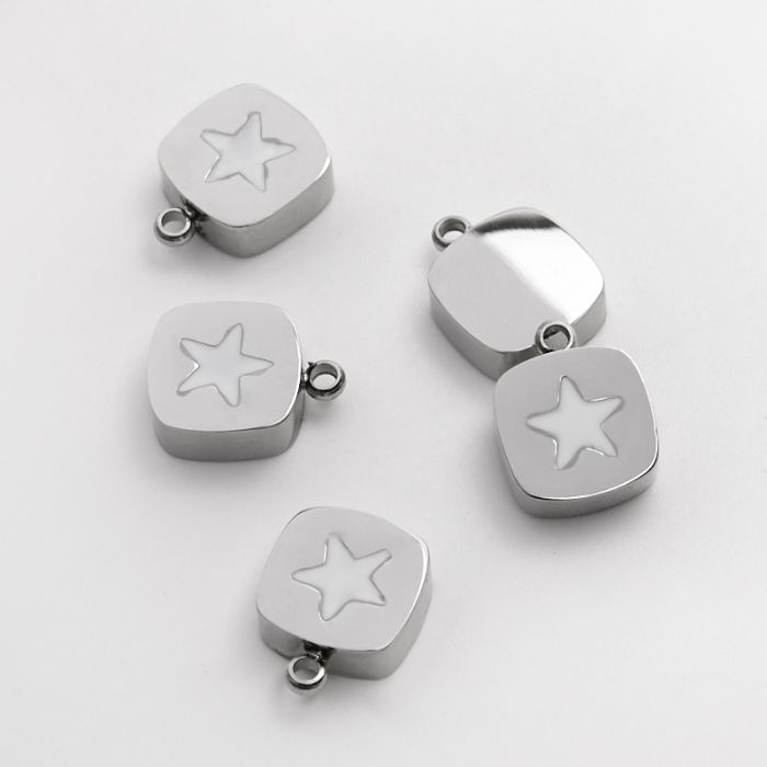Emaliowana zawieszka ze stali chirurgicznej białą gwiazdką w kolorze srebrnym 11mm