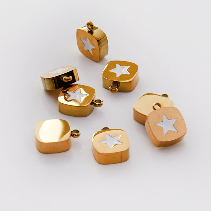Emaliowana zawieszka ze stali chirurgicznej białą gwiazdką w kolorze złotym 11mm PVD
