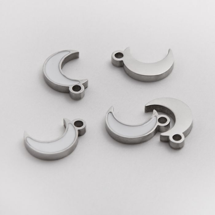 Emaliowana zawieszka ze stali chirurgicznej biały księżyc w kolorze srebrnym 8,5mm