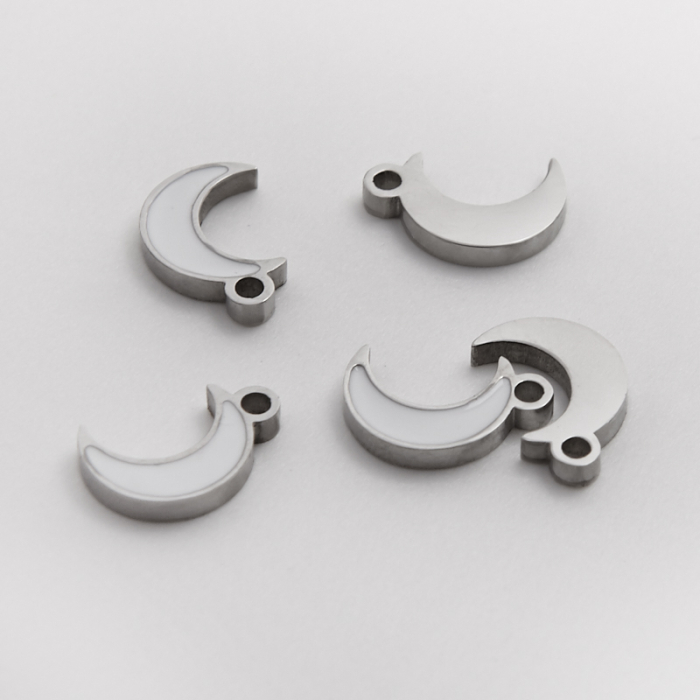 Emaliowana zawieszka ze stali chirurgicznej biały księżyc w kolorze srebrnym 8,5mmTo starannie wykonany produkt ze stali chirurgicznej 316L, który dobrze prezentuje się w codziennym użytkowaniu. Stal chirurgiczna 316L jest ceniona za odporność na korozję i estetyczny wygląd w codziennym użytkowaniu.Zawieszka ze stali chirurgicznej 316L to dekoracyjny element, który nadaje biżuterii charakteru i pozwala tworzyć spersonalizowane projekty. Świetnie sprawdza się w naszyjnikach, bransoletkach, kolczykach oraz drobnych charmsach.Forma lub motyw