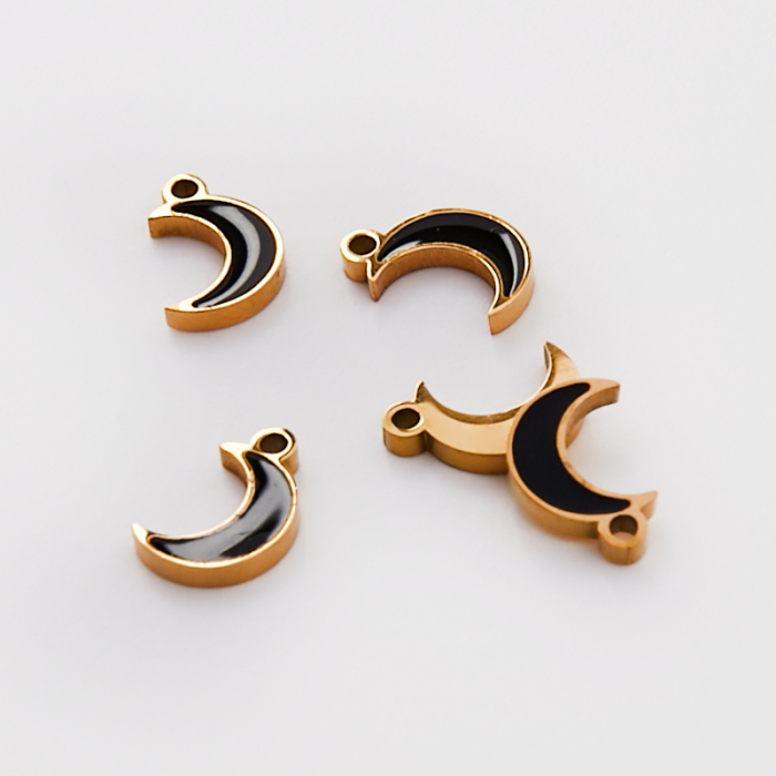 Emaliowana zawieszka ze stali chirurgicznej czarny księżyc w kolorze złotym 9mm PVDTo dopracowany produkt ze stali chirurgicznej 316L, który łączy praktyczność z estetycznym wyglądem. To materiał chętnie wybierany do biżuterii handmade ze względu na trwałość, estetykę i wygodę użytkowania. Wykończenie w kolorze złotym uzyskane metodą PVD.Zawieszka ze stali chirurgicznej 316L to dekoracyjny element, który nadaje biżuterii charakteru i pozwala tworzyć spersonalizowane projekty. Świetnie sprawdza się w naszyjnikach, bransoletkach, kolczykach oraz drobnych charmsach.Forma lub motyw