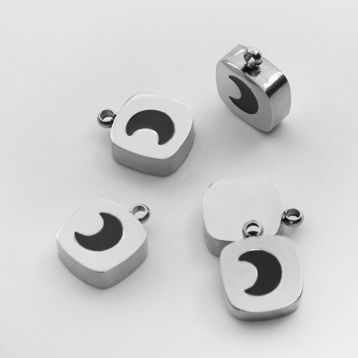 Emaliowana zawieszka ze stali chirurgicznej czarnym księżycem w kolorze srebrnym 11mm