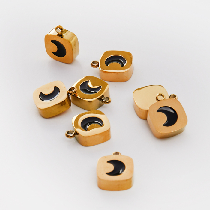Emaliowana zawieszka ze stali chirurgicznej czarnym księżycem w kolorze złotym 11mm PVDTo starannie wykonany produkt ze stali chirurgicznej 316L, który dobrze prezentuje się w codziennym użytkowaniu. W biżuterii handmade stal chirurgiczna 316L jest ceniona za dobry wygląd, odporność na korozję i wygodę codziennego użytkowania. Wykończenie w kolorze złotym uzyskane metodą PVD.Zawieszka ze stali chirurgicznej 316L to dekoracyjny element, który nadaje biżuterii charakteru i pozwala tworzyć spersonalizowane projekty. Świetnie sprawdza się w naszyjnikach, bransoletkach, kolczykach oraz drobnych charmsach.Forma lub motyw