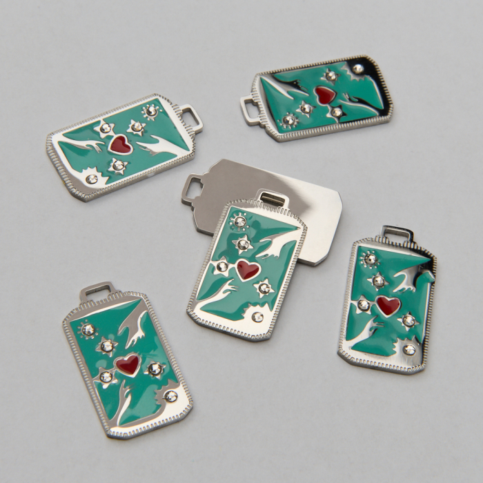 Emaliowana zawieszka ze stali chirurgicznej karta tarota dwie dłonie z sercem i cyrkoniami w kolorze srebrnym 25,5mmTo trwały element biżuterii lub półfabrykat jubilerski, który dobrze sprawdza się w codziennych realizacjach. W biżuterii handmade stal chirurgiczna 316L jest ceniona za dobry wygląd, odporność na korozję i wygodę codziennego użytkowania.Zawieszka ze stali chirurgicznej 316L to dekoracyjny element, który nadaje biżuterii charakteru i pozwala tworzyć spersonalizowane projekty. Świetnie sprawdza się w naszyjnikach, bransoletkach, kolczykach oraz drobnych charmsach.Forma lub motyw