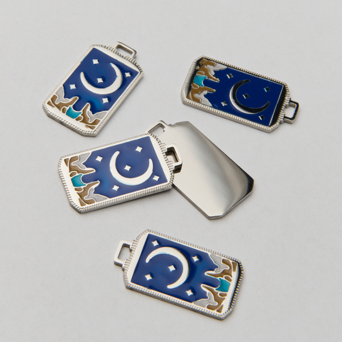 Emaliowana zawieszka ze stali chirurgicznej karta tarota księżyc na granatowym niebie w kolorze srebrnym 25,5mmTo starannie wykonany produkt ze stali chirurgicznej 316L, który dobrze prezentuje się w codziennym użytkowaniu. Stal chirurgiczna 316L dobrze sprawdza się w biżuterii noszonej na co dzień, ponieważ łączy trwałość z estetycznym wykończeniem.Zawieszka ze stali chirurgicznej 316L to dekoracyjny element, który nadaje biżuterii charakteru i pozwala tworzyć spersonalizowane projekty. Świetnie sprawdza się w naszyjnikach, bransoletkach, kolczykach oraz drobnych charmsach.Forma lub motyw