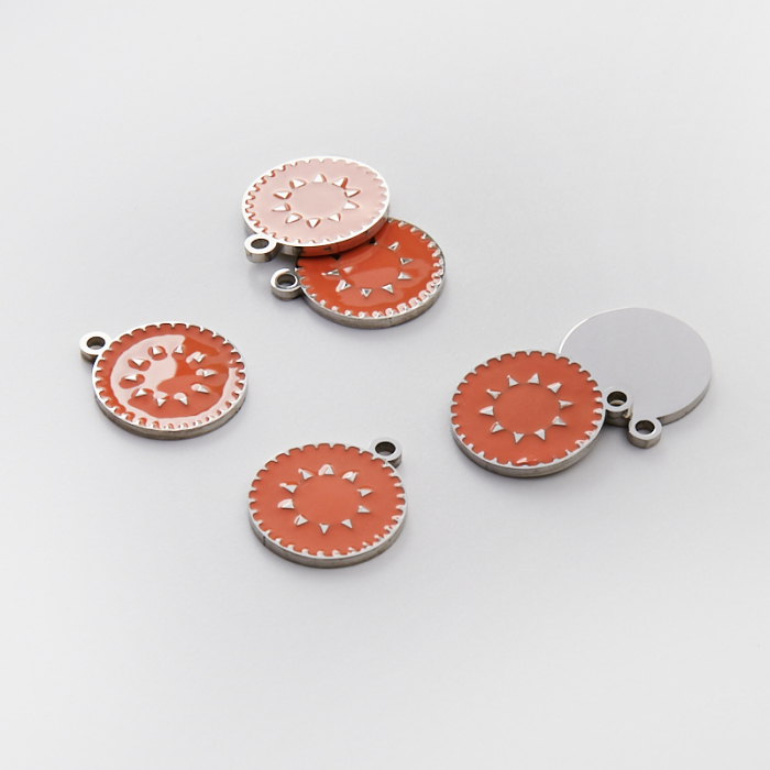 Emaliowana zawieszka ze stali chirurgicznej kółko łososiowe w kolorze srebrnym 18mm