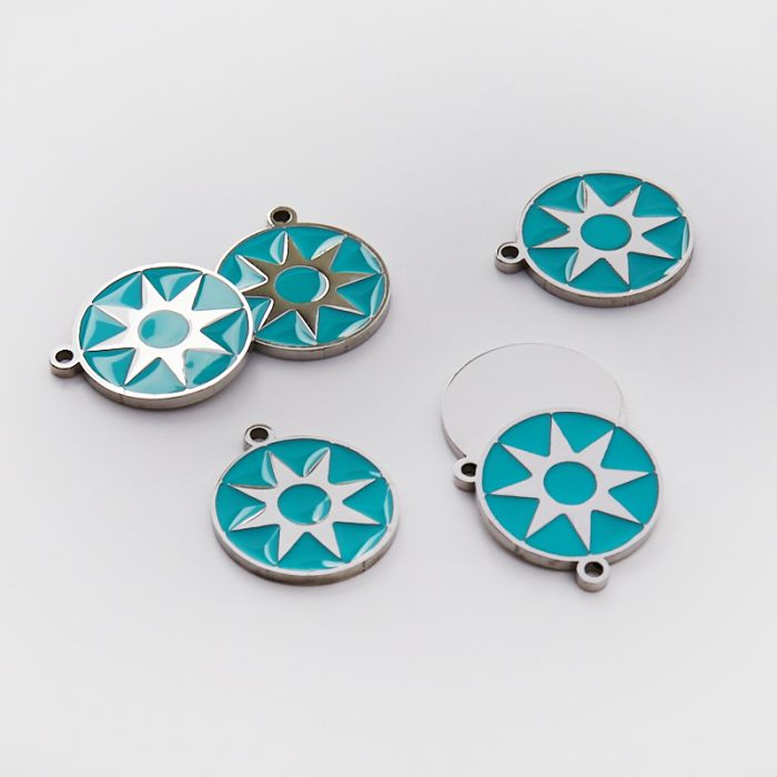 Emaliowana zawieszka ze stali chirurgicznej kółko z gwiazdą turkusową w kolorze srebrnym 18mm