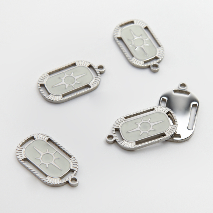 Emaliowana zawieszka ze stali chirurgicznej prostokąt ze słońcem w kolorze srebrnym 21,5mmTo starannie wykonany produkt ze stali chirurgicznej 316L, który dobrze prezentuje się w codziennym użytkowaniu. W biżuterii handmade stal chirurgiczna 316L jest ceniona za dobry wygląd, odporność na korozję i wygodę codziennego użytkowania.Zawieszka ze stali chirurgicznej 316L to dekoracyjny element, który nadaje biżuterii charakteru i pozwala tworzyć spersonalizowane projekty. Świetnie sprawdza się w naszyjnikach, bransoletkach, kolczykach oraz drobnych charmsach.Forma lub motyw