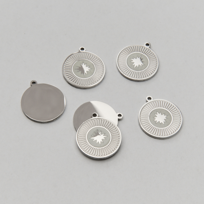 Emaliowana zawieszka ze stali chirurgicznej róża wiatrów na białym tle w kolorze srebrnym 14,5mmTo starannie wykonany produkt ze stali chirurgicznej 316L, który dobrze prezentuje się w codziennym użytkowaniu. W biżuterii handmade stal chirurgiczna 316L jest ceniona za dobry wygląd, odporność na korozję i wygodę codziennego użytkowania.Zawieszka ze stali chirurgicznej 316L to dekoracyjny element, który nadaje biżuterii charakteru i pozwala tworzyć spersonalizowane projekty. Świetnie sprawdza się w naszyjnikach, bransoletkach, kolczykach oraz drobnych charmsach.Forma lub motyw