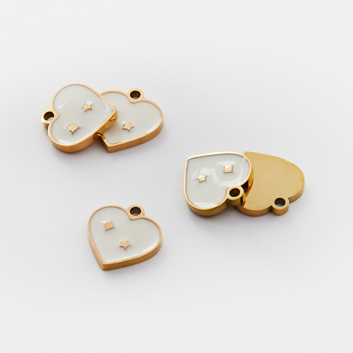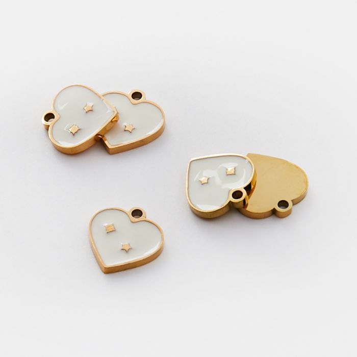 Emaliowana zawieszka ze stali chirurgicznej serce z gwiazdkami białe w kolorze złotym 10mm PVD
