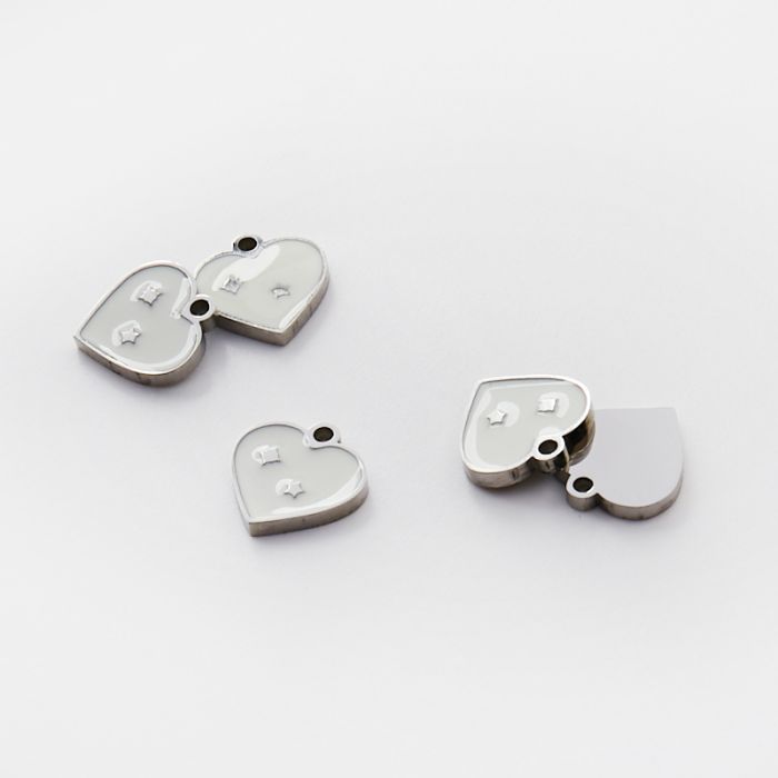 Emaliowana zawieszka ze stali chirurgicznej serce z gwiazdkami białymi w kolorze srebrnym 10mm