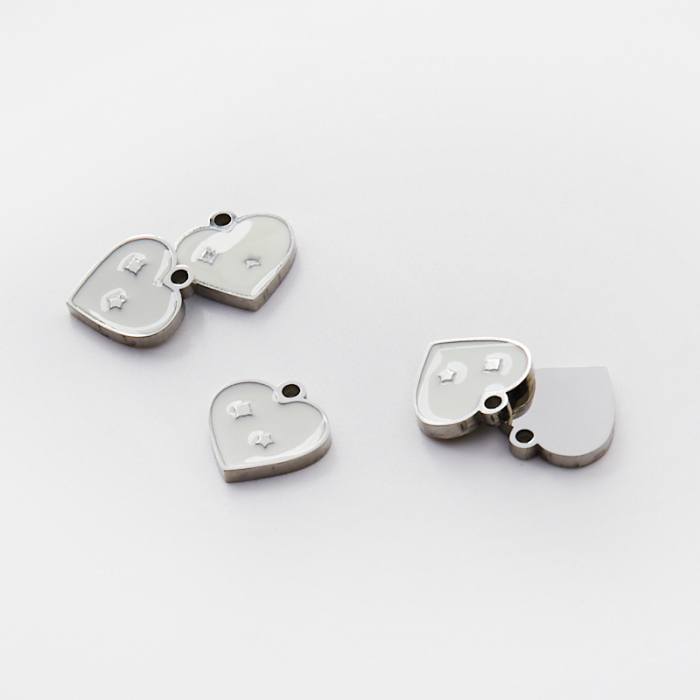 Emaliowana zawieszka ze stali chirurgicznej serce z gwiazdkami białymi w kolorze srebrnym 10mmTo estetyczny element biżuteryjny ze stali chirurgicznej 316L, chętnie wybierany do nowoczesnych projektów. W biżuterii handmade stal chirurgiczna 316L jest ceniona za dobry wygląd, odporność na korozję i wygodę codziennego użytkowania.Zawieszka ze stali chirurgicznej 316L to dekoracyjny element, który nadaje biżuterii charakteru i pozwala tworzyć spersonalizowane projekty. Świetnie sprawdza się w naszyjnikach, bransoletkach, kolczykach oraz drobnych charmsach.Forma lub motyw