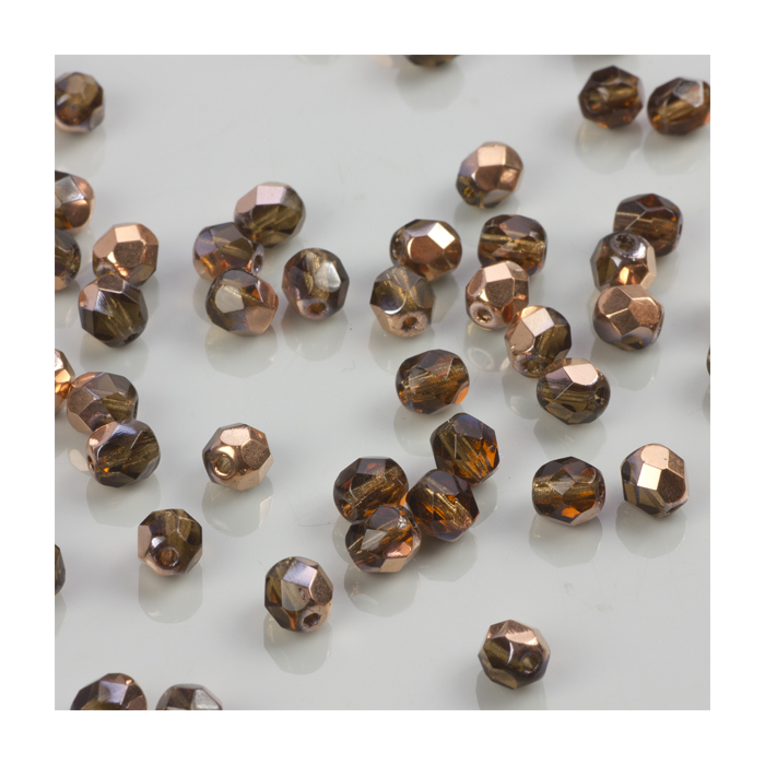 Fire Polish Copper - Smoky Topaz (C10230) 6mm