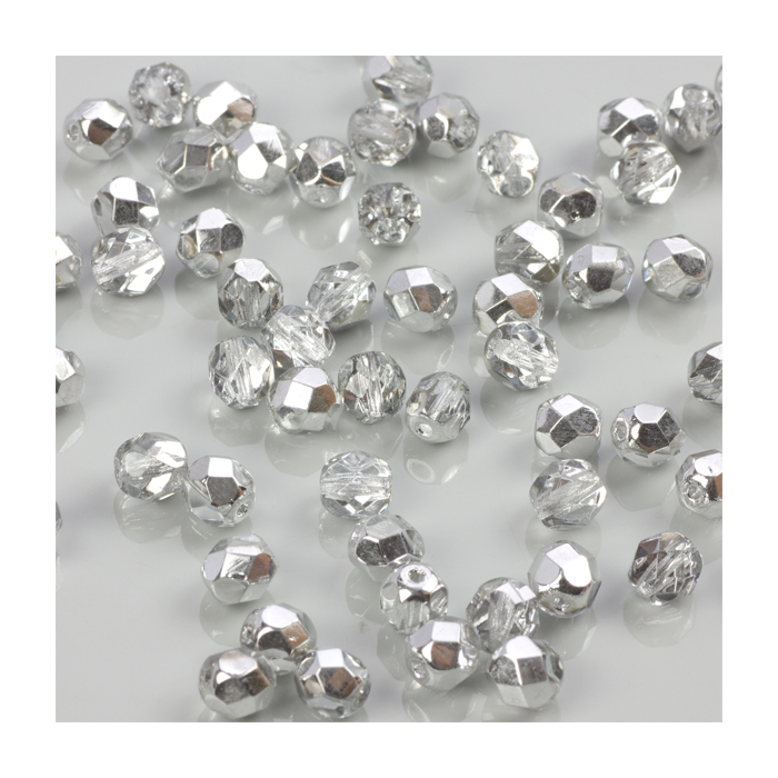 Fire Polish Silver 1/2 Coated Crystal (S00030) 6mm
