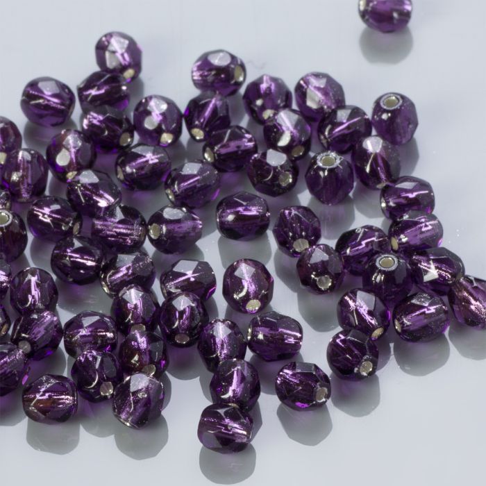 Fire Polish Silver Lined Tanzanite (SL20510) 4mm