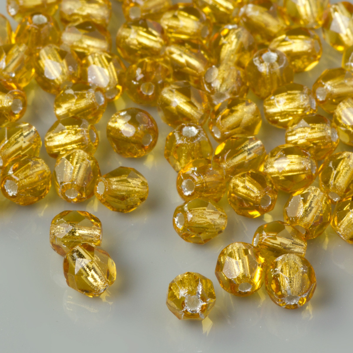 Fire Polish Silver Lined - Topaz (SL10060) 4mm