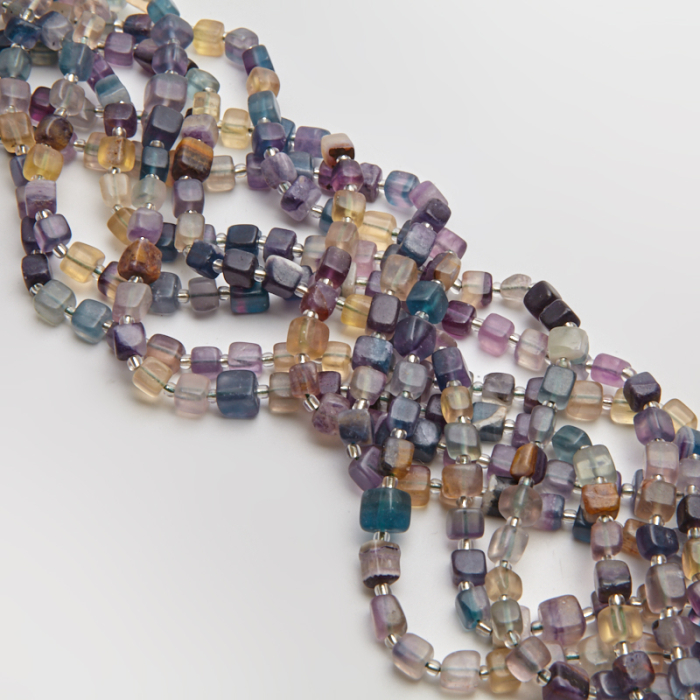Fluoryt kostka wyróżnia się naturalną strukturą, dzięki czemu świetnie sprawdza się w biżuterii handmade – od bransoletek po naszyjniki.