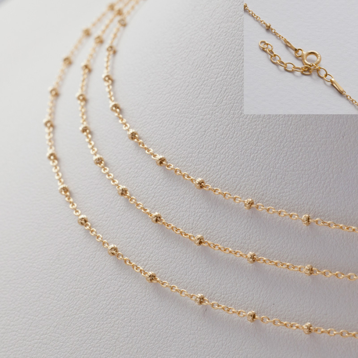 Gotowy łańcuszek ozdobny z oponkami diamentowanymi pozłacany AG925 45cm