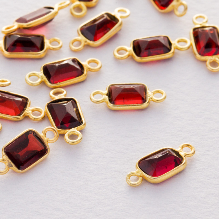 Granat fasetowany prostokąt łącznik w okuciu pozłacanym AG925 7x4,5mm