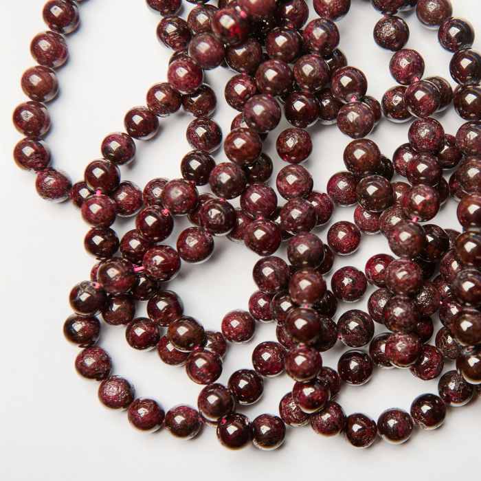 Granat kulka wyróżnia się naturalną strukturą, dzięki czemu świetnie sprawdza się w biżuterii handmade – od bransoletek po naszyjniki.
