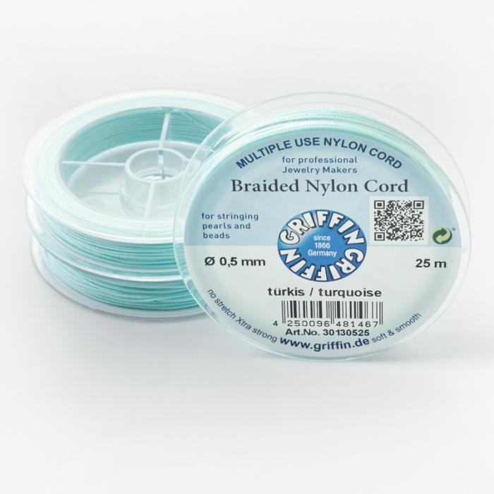 Sznurek nylonowy Griffin 0,5 mm w kolorze turkusowy to dobry wybór do makramy i rękodzieła, w których liczy się stabilny splot, wygodna praca i estetyczne wykończenie.