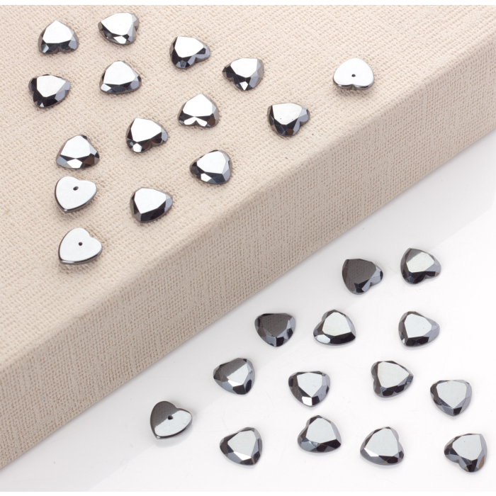 Hematyt kaboszon serce fasetowane z dziurką do sztyftów 12mm