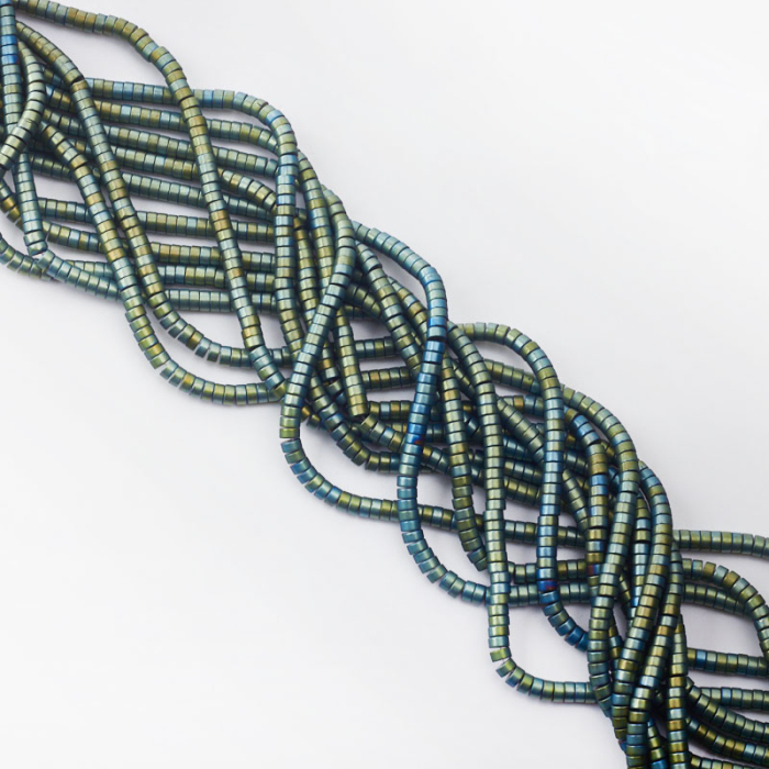Kamienie naturalne wykonane z hematytu w kształcie krążka. Kamienie w kolorze metalicznym matowym zielonym. Można je wykorzystać jako przekładki lub zwykłe koraliki.*Ponieważ są to kamienie naturalne mogą się nieznacznie różnić od siebie rozmiarem.*Rozmiar podany w nazwie produktu jest wartością orientacyjną. Charakterystyka: