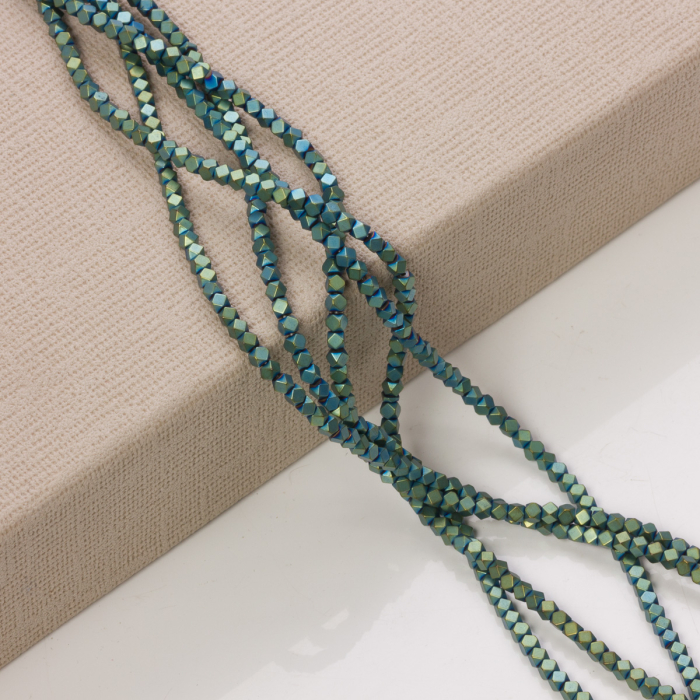 Hematyt platerowany kostka ścięta mat emarald 3x3mm