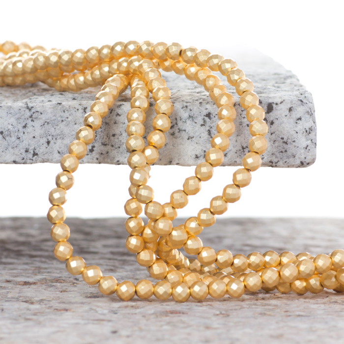 Hematyt platerowany kulka fasetowana light gold satine 3,5mm