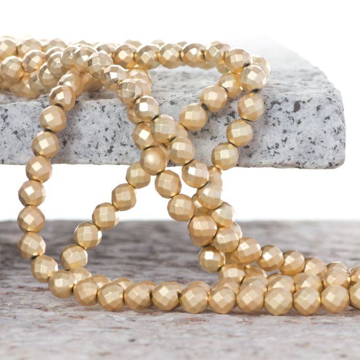 Hematyt platerowany kulka fasetowana light gold satine 6mm