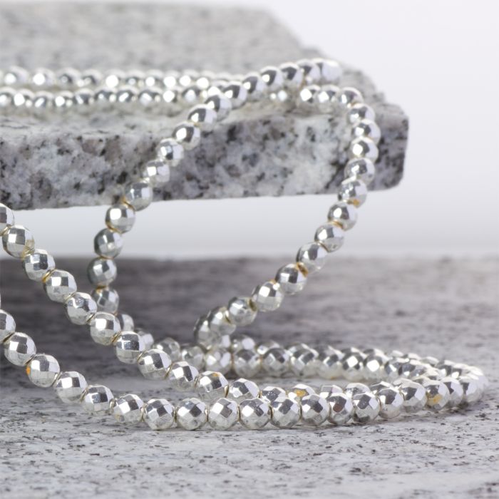 Hematyt platerowany kulka fasetowana light silver 4mm