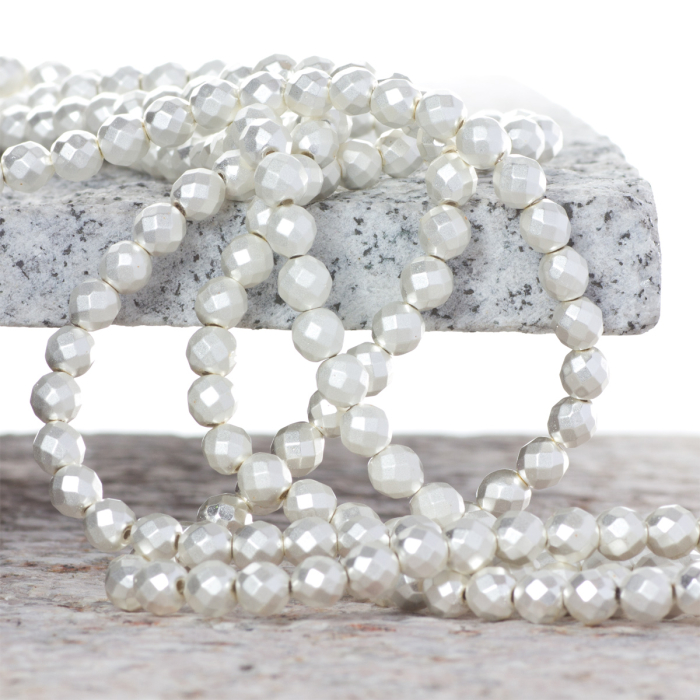 Hematyt platerowany kulka fasetowana light silver satine 6mm