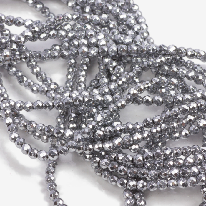 Hematyt platerowany kulka fasetowana silver 3mm