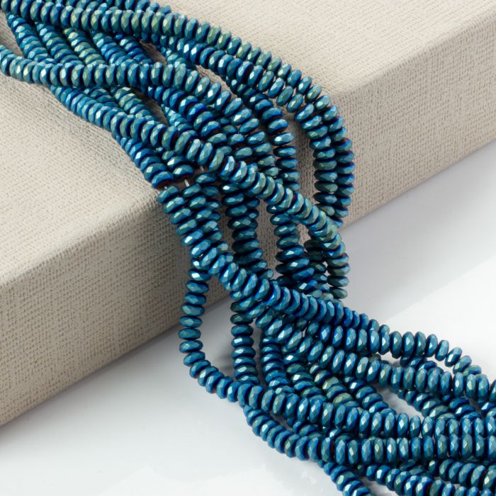 Hematyt platerowany oponka fasetowana blue emarald 6x3mm