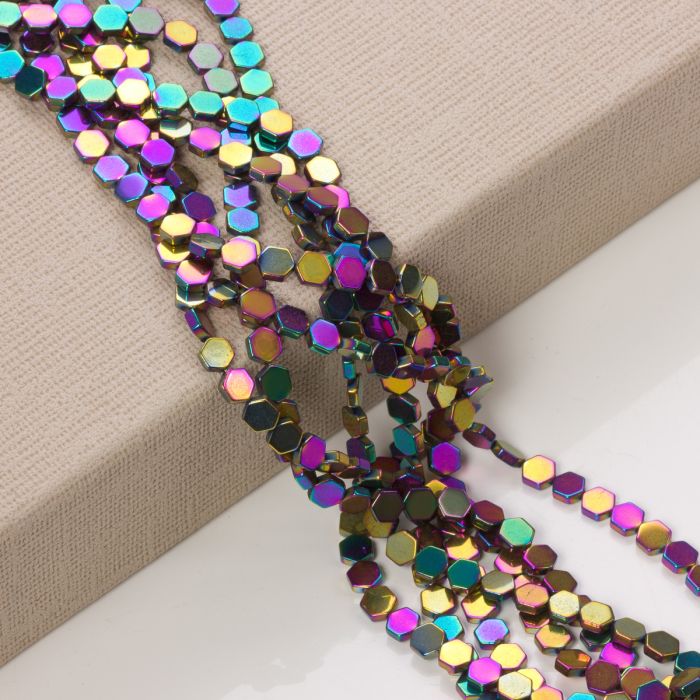 Hematyt platerowany sześciokąt płaski multicolor 6x6mm