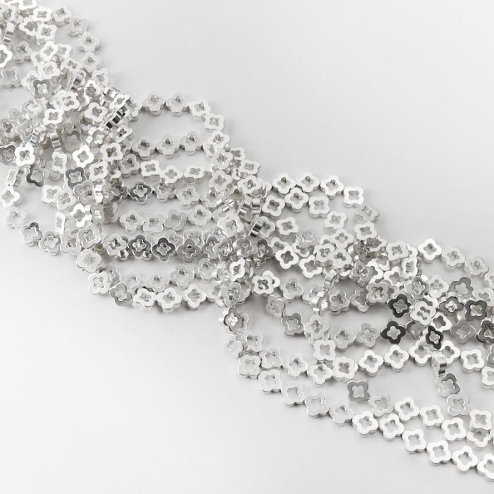 Hematyt przekładka koniczyna marokańska wycięta light silver mat 8mm