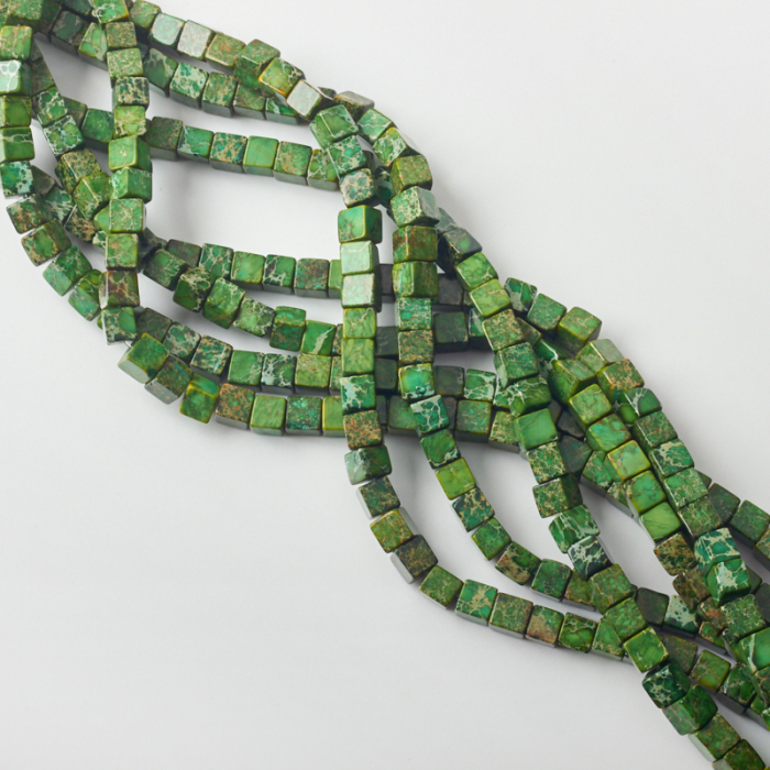 Jaspis cesarski kostka ciemna zieleń 6-6,5mm