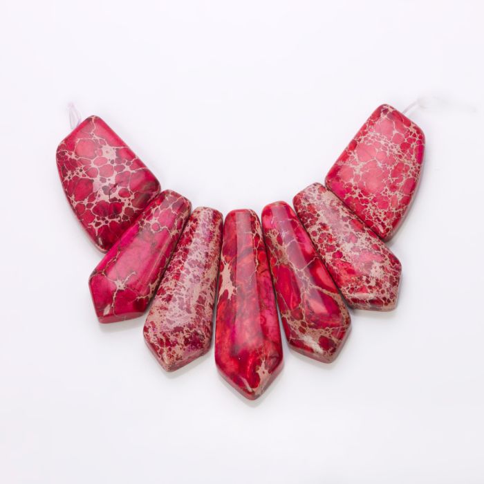Jaspis cesarski zestaw do naszyjnika groty różowe