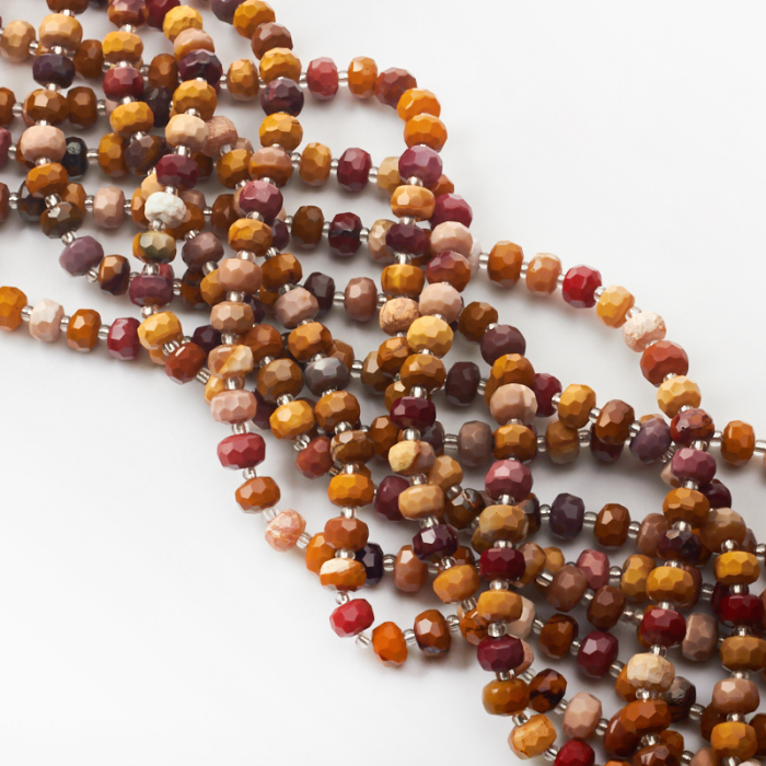 Jaspis mokait wyróżnia się tym, że ziemiste barwy i naturalne przejścia kolorów tworzą ciepły, bardzo charakterystyczny efekt. To kamień chętnie wybierany do autorskich kompletów biżuterii o bardziej organicznym wyglądzie.
